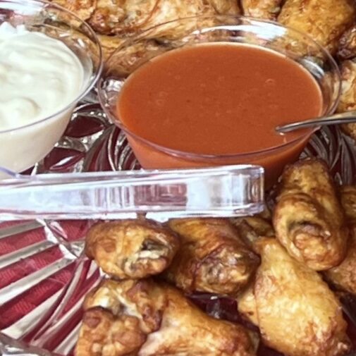 Assortment of (8) Chicken Drums & Flats. Sauce served on side.