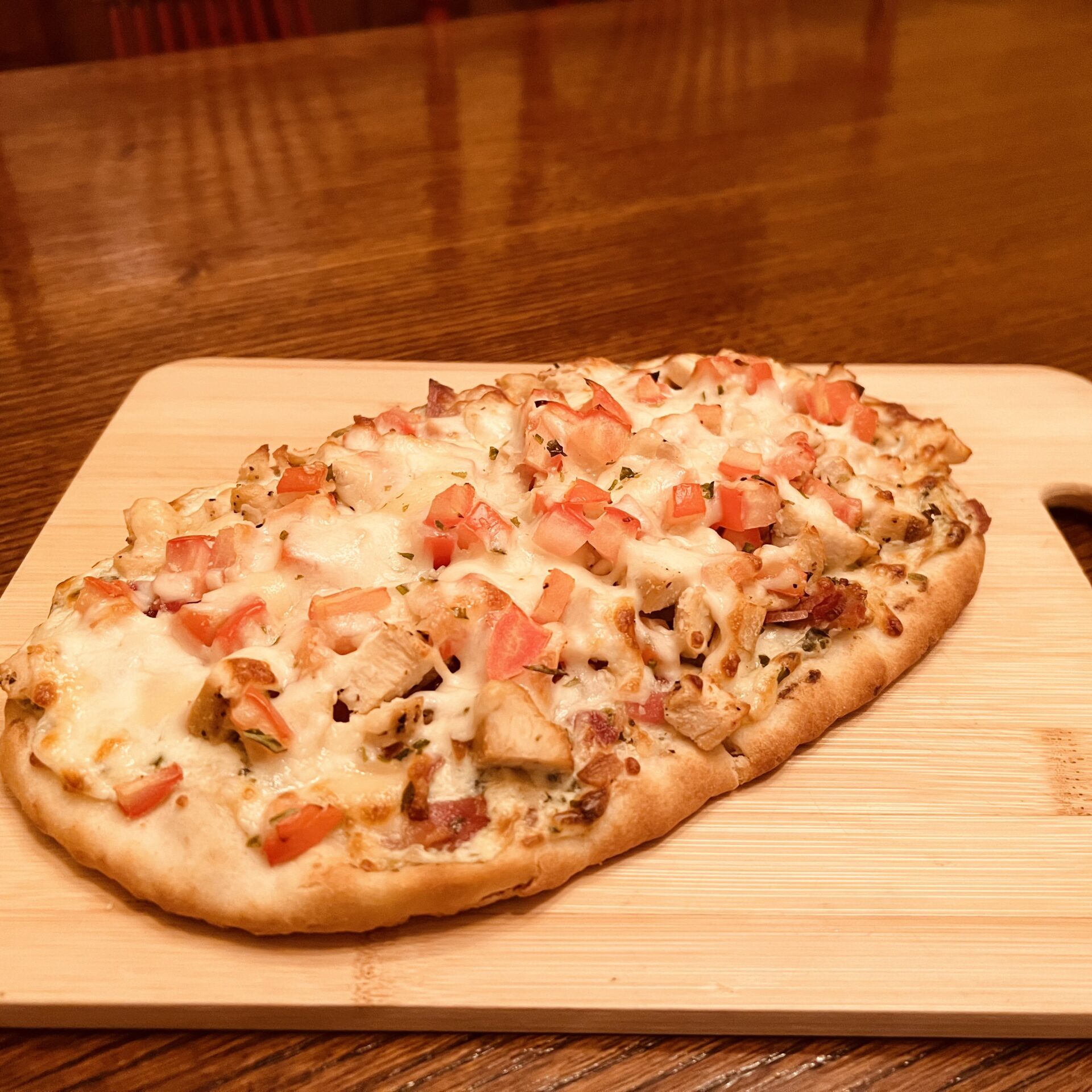 BBQ Sauce, Brisket, French Fried Onions, Mozzarella, and Cheddar Cheese.
